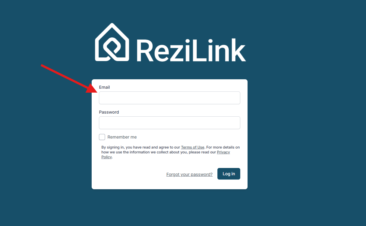 In the Email field, type the email address associated with your ReziLink account.